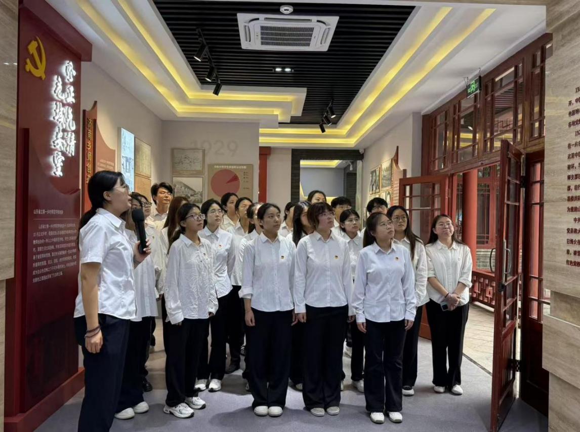 参观前,全体学生党员在中共济南乡师党史陈列室前广场,面对党旗,重温入党誓词,铭记入党初心。学生党员们在讲解员的带领下,依次参观了中共济南乡师党史陈列室中“风清气正 危域安室”“初心如炬 无悔抉择”“铁血担当 撒播火种”“投身抗战 烽火燎原”“赓续血脉 递接火炬”5个展区,通过图片文献、实物展示和全息影像等形式,聆听文献史料背后的革命故事,重温济南乡师党支部这一“白区里的红色党校”在国民党白色恐怖下,组织重建济南和山东党组织的光辉历史。