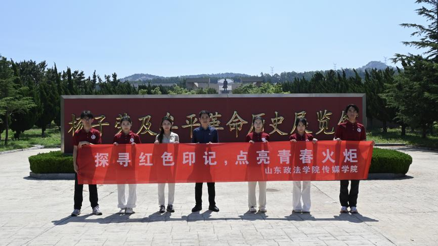 (记者 王梦雪)为深入探寻红色文化创造性转化、创新性发展的实践路径,全面挖掘胶东革命历史中的英雄事迹、红色遗址蕴含的精神内核,充分发挥牟平红色文化铸魂育人、凝心聚力的时代价值。7月1日,山东政法学院传媒学院团委副书记刘晓萌、辅导员孙晋峰带领“山溯古韵,海启新声”暑期社会实践队,赴杨子荣纪念馆开展红色文化专题调研。