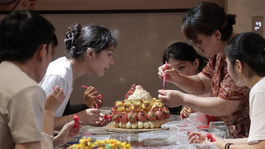 在非遗传承人的指导下,实践队员上手制作胶东花饽饽,体验非遗面塑工艺。揉、压、捏、剪……在匠人师傅的精湛手艺下,一个个活灵活现的面塑作品逐渐成型。实践队员精心打磨作品的同时,深刻感悟到踏实肯干、精益求精的匠心理念,已经悄然浸润心田。