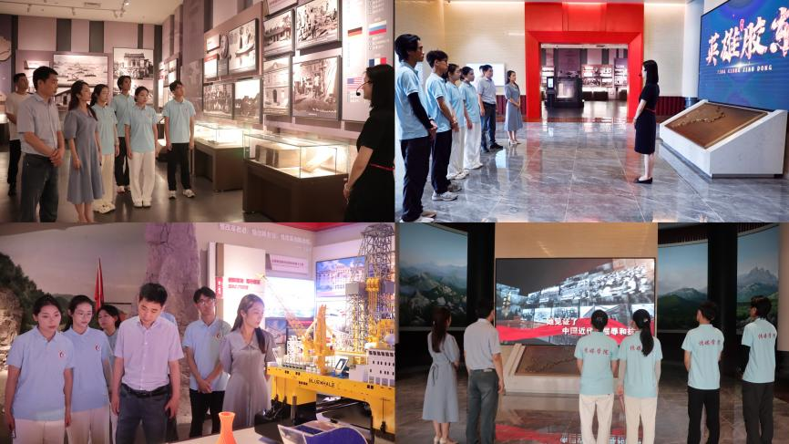 古韵悠悠,忠魂巍巍。实践队走进养马岛,通过实地考察、典籍考据等方式追溯“始皇牧马”的千年传说,沉浸式感受海岛渔耕文化与海洋民俗的独特魅力。在胶东红色文化纪念馆,队员们通过聆听讲解、瞻仰革命文物、观看历史影像等方式系统了解胶东军民浴血奋战的光辉历程。从一一·四暴动的星火燎原到地雷战、麻雀战的智慧抗争,从胶东子弟兵跨海征战到支前民工的无私奉献,每一段历史都彰显着胶东儿女忠诚担当、敢为人先的气魄。队员们集体观看《飞跃烟台》VR全景宣传片,沉浸式领略仙境海岸、鲜美烟台的独特魅力,深切感受这座历史文化名城在新时代高质量发展进程中焕发的蓬勃生机与崭新气象。