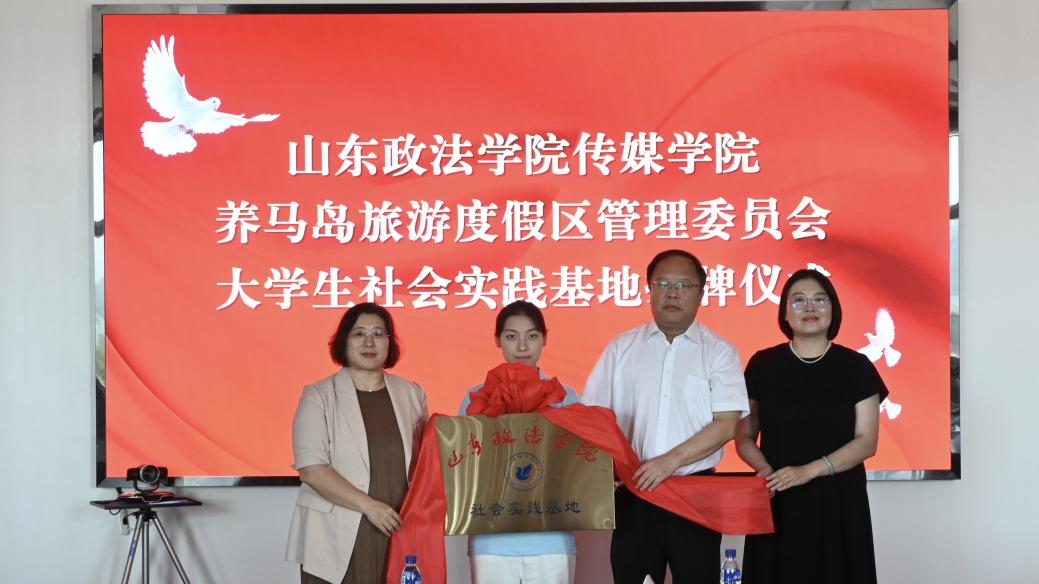 (记者 孙梓轩)为推动高校实践育人工作深度融入服务地方发展大局,进一步强化校地共建,促进高校资源与地方文旅产业融合发展,推动文化传承创新。7月5日,山东政法学院传媒学院与烟台市牟平养马岛旅游度假区管委会共建“大学生社会实践基地”座谈会及揭牌仪式举行。山东政法学院传媒学院党委书记徐永青、团委副书记刘晓萌、辅导员孙晋峰、“山溯古韵、海启新声”社会实践队员,牟平养马岛旅游度假区党工委书记、管委会主任姜振超等7位牟平养马岛旅游度假区管委会领导,牟平团区委书记姜萍、挂职副书记陈政锟出席仪式。