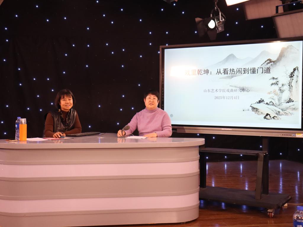 12月4日下午,山东艺术学院社科联副主席、博士生导师周爱华教授以《戏里乾坤:从看热闹到懂门道》为题做客山东政法学院美育大讲坛,山东政法学院传媒学院院长孟文彬教授主持讲座。